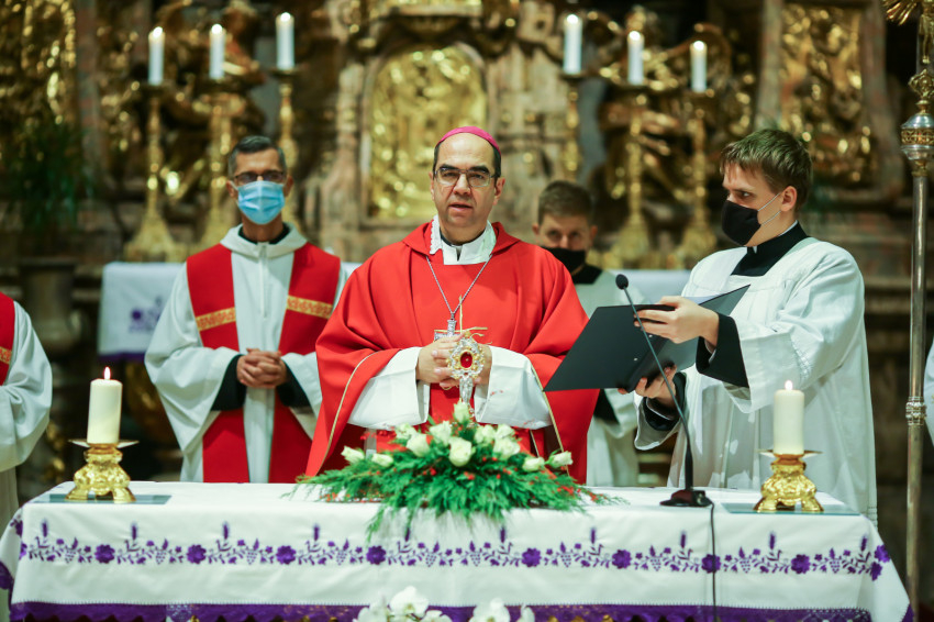 Az ünnepélyes bevonulás során a rektor hozta be monstranciában a Brenner János kisujjcsontjából vett ereklyét: abból a kézből származik, mely a brutális kegyetlenséggel elkövetett gyilkosság közben is védte, szorította az Oltáriszentséget. Az 1957-ben, 26 évesen 32 késszúrással meggyilkolt áldozópap az utolsó pillanatban is Jézusba kapaszkodott.