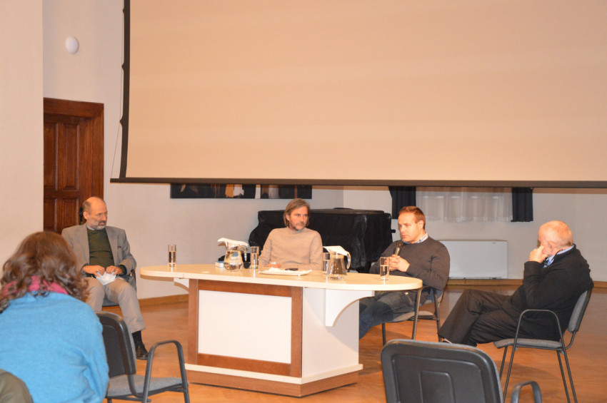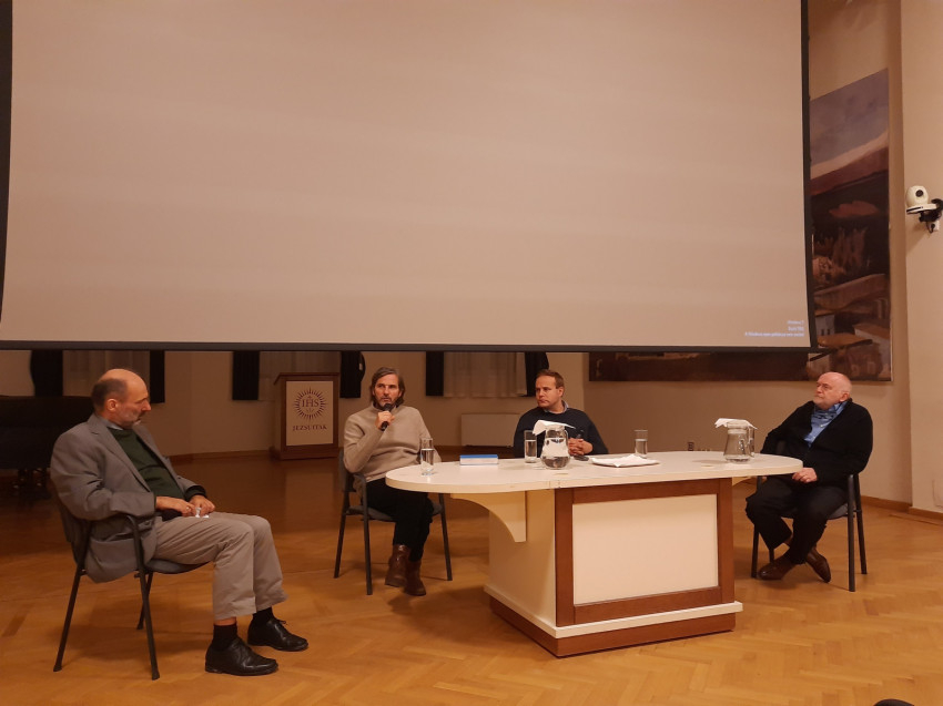A vetítést követő kerekasztal-beszélgetés résztvevői Kollár-Klemencz László író, a Kistehén zenekar énekese, dalszerzője; Bagi Iván előadóművész; Lázár Kovács Ákos médiakutató, filmesztéta és Sajgó Szabolcs SJ, a Párbeszéd Házának igazgatója voltak.