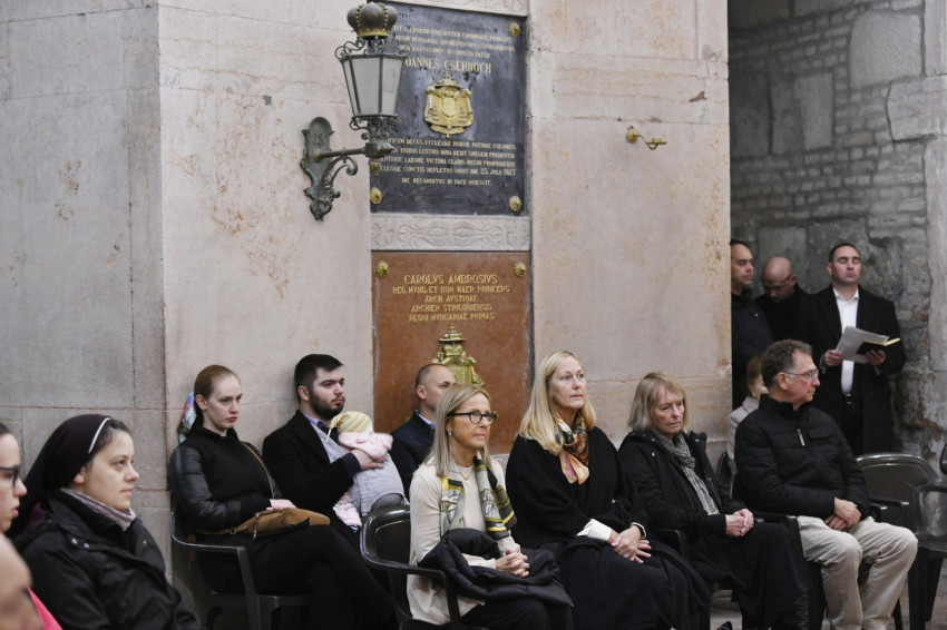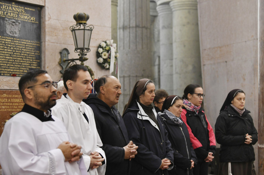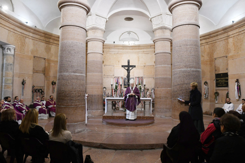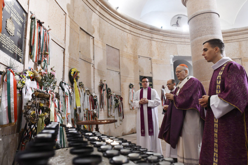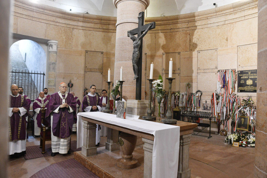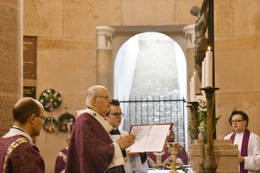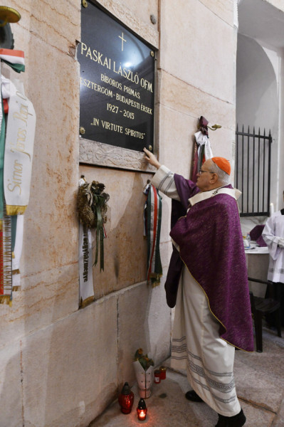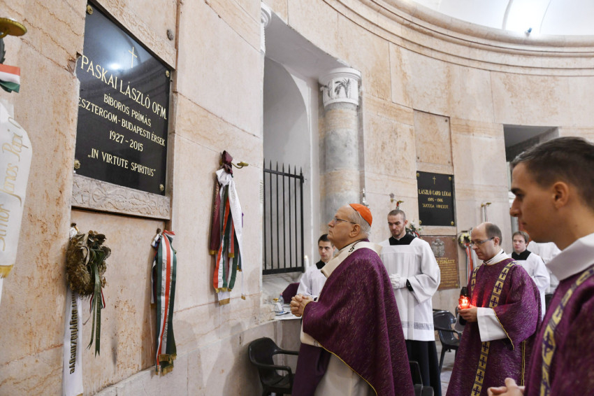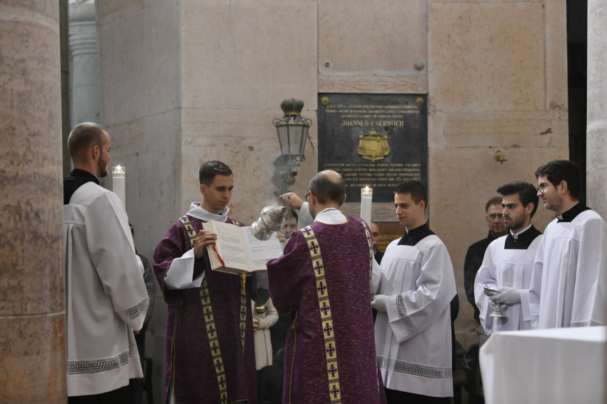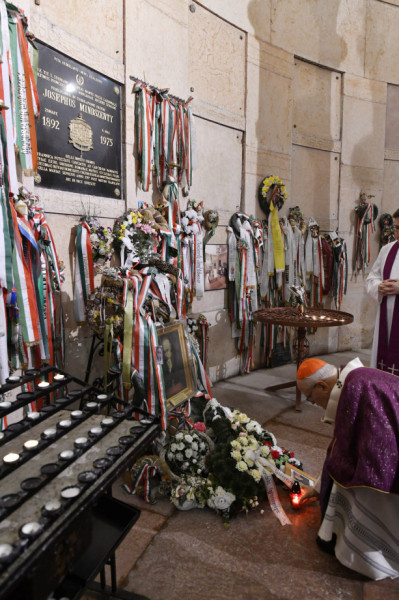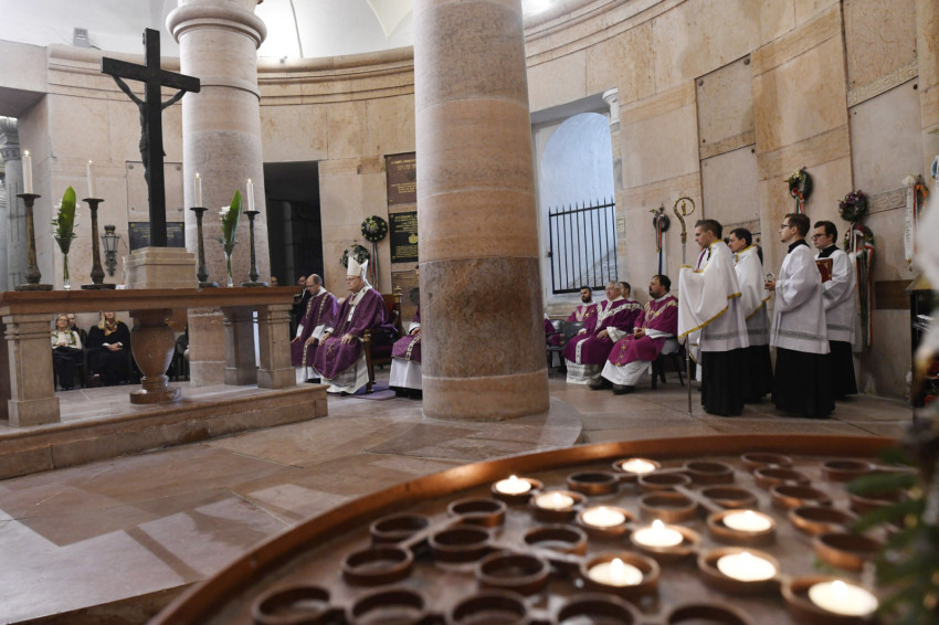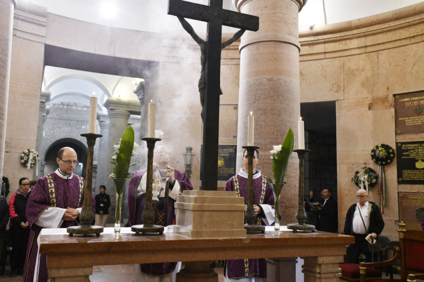 A liturgia végén a bíboros és az asszisztencia gyertyát gyújtott a főegyházmegye elhunyt főpásztorainak sírjainál.