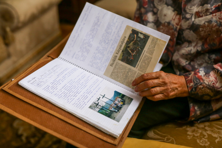 Teréz néni begyújtott a cserépkályhába, süteménnyel kínál minket. „Izgulok” – jelzi, hogy nem szeret magáról beszélni, inkább mindig a háttérben marad és cselekszik. Felkészült a beszélgetésre, kezében van az 1992 óta, a megalakulásuktól folyamatosan vezetett napló a közel 30 év eseményeiről, emlékeiről.