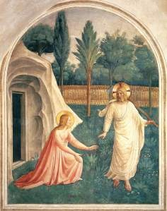 Mivel a magdalai Máriának jelent meg először a feltámadt Krisztus, János evangélista elbeszélésében Mária és Jézus találkozása annak ősképe, ahogyan először találkozunk az élő Krisztussal.