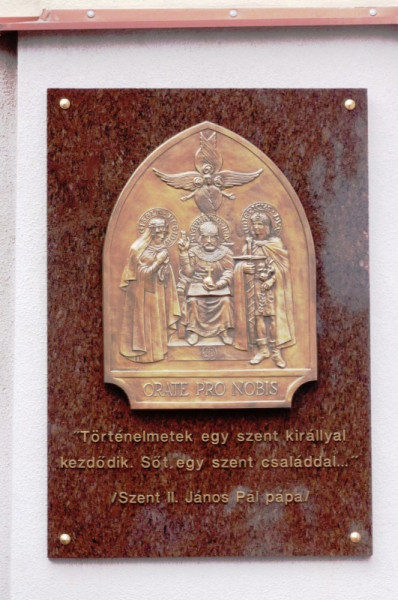 Az ünnepség kezdetén Lacko Mária polgármester köszöntötte az egybegyűlteket. „Ma tovább írjuk községünk és benne templomunk történelmét, amikor templomunk külső falán megörökíthetjük Szent II. János Pál pápa szavait, amelyet 2000. október 8-án intézett népünkhöz: »Történelmetek egy szent királlyal kezdődik. Sőt, egy szent családdal… «” – mondta.
