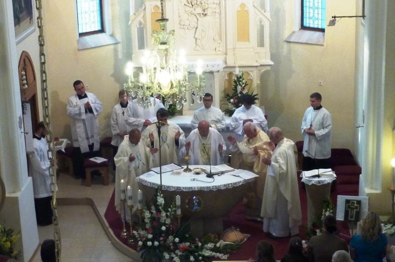 Mihályi Margit, aki a gesztor, Lezsák Sándor, a magyar parlament alelnöke képviseletében volt jelen, és Szesztay Ádám kassai főkonzul leplezték le a Magyar Kormány Emberi Erőforrások Minisztériuma támogatásával készült emléktáblát, amelyet ezt követően Bartal Károly Tamás apát áldott meg. A szentmise ünnepi szónoka Szalay László nagyidai plébános, az egyházközség szülöttje volt, aki az örökségbe kapott lelki, szellemi, anyagi értékek hiteles őrzésére, ápolására és továbbadására buzdított.