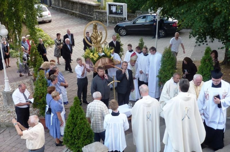 A szentmise végén körmenet következett az első szent magyar család ereklyéivel. Bevezetőként Nagy István, a Boldog Salkaházi Sára egyházi intézmény igazgatója a katolikus hit megőrzéséről szóló részletet olvasta fel az Intelmekből, amelyek ma különösen is időszerűek, mert Szent István király nem választható el sem az Istentől, sem az egyháztól, sem a kereszténységtől.