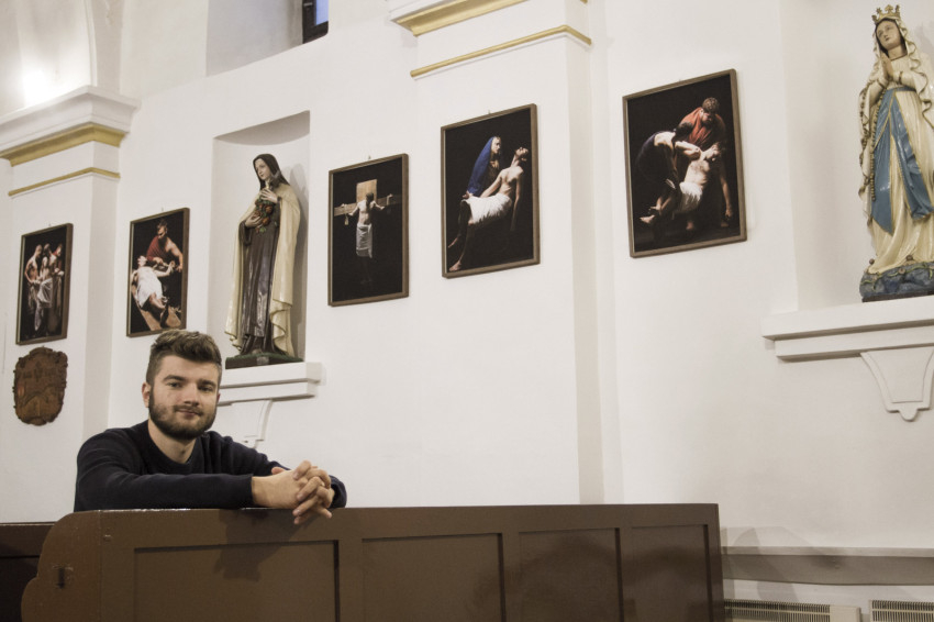 – Vallásos fiatalokkal rendeztem meg a 14 állomást. A képek egy fotóstúdióban készültek Budapesten 2019-ben. A háttér fekete, a fények, a színek, a ruhák és az eszközök pedig a barokk festmények hatását hivatottak kelteni. A 14 darab képem 50x70-es méretben lett kinyomtatva, és sötét fa keretbe helyezve. A fiatalok örömmel vállalták a felkérést, persze, a kezdeti munkát mosolyszünetek szakították meg.