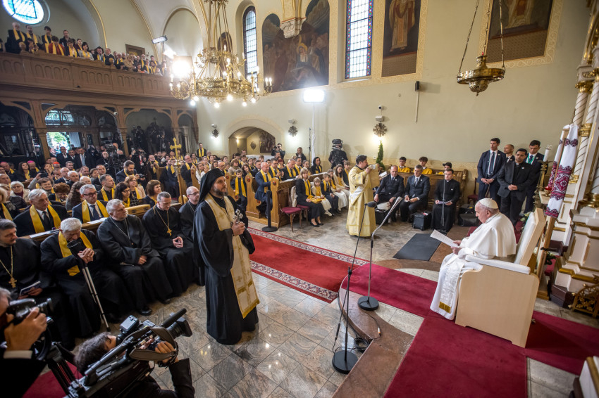 Ferenc pápa a Rózsák terén található Istenszülő Oltalma templomba is látogatott, hogy kifejezze közelségét a görögkatolikus közösség felé is. Beszámolónkat IDE KATTINTVA olvashatják. Kocsis Fülöp hajdúdorogi érsek-metropolita köszöntője IDE KATTINTVA érhető el.