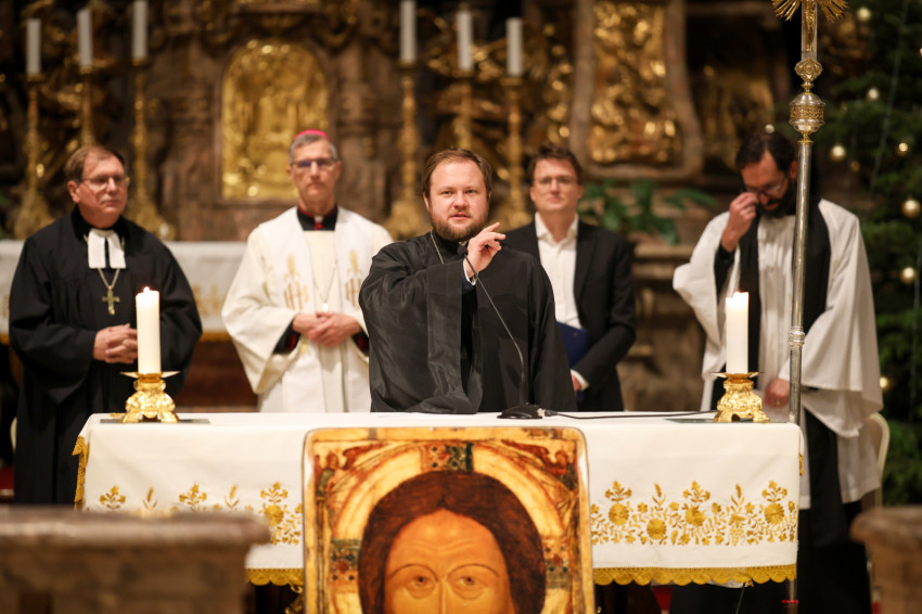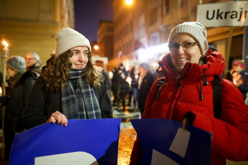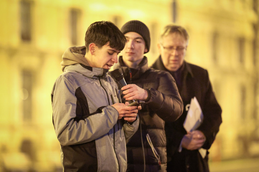 A reményteljes szavak után fáklyákkal és magasba emelt, a háborúban szenvedő országok nevét hirdető táblákkal indultak el a résztvevők az Egyetemi templom felé, ahol ökumenikus, vallásközi imádság kezdődött.