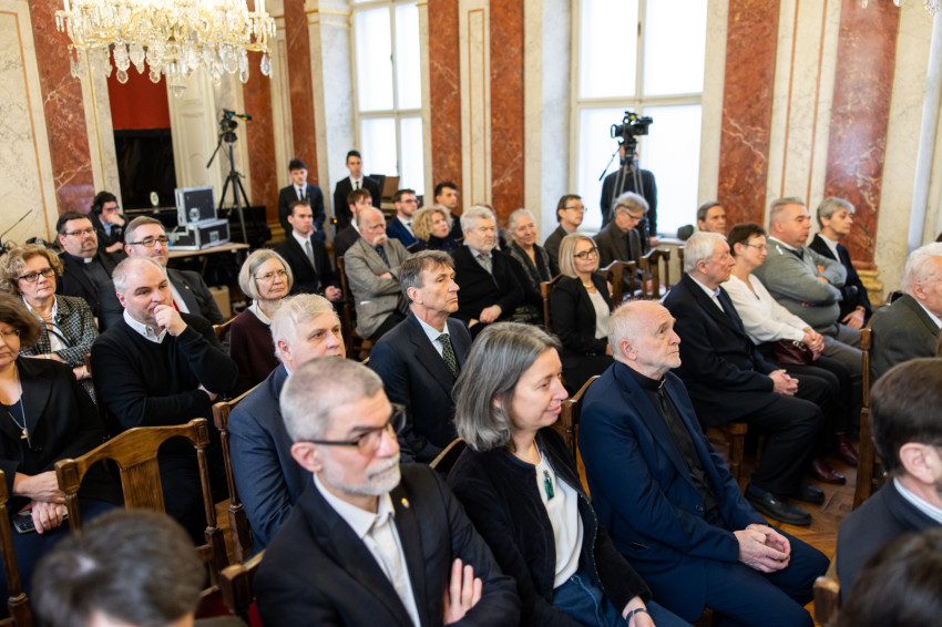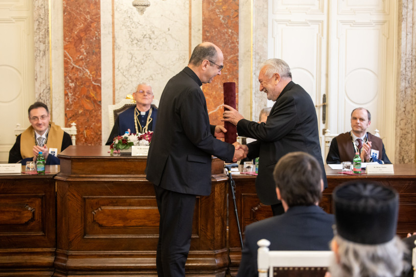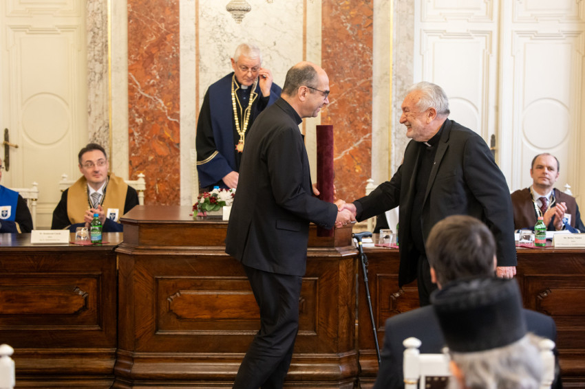 Az ünnepélyes díszdoktoravatáson a Pázmány Péter Katolikus Egyetem (PPKE) egyetemi tanácsa és Székely János, a PPKE nagykancellárja, a Magyar Katolikus Püspöki Konferencia (MKPK) elnöke mellett jelen volt többek közt Kocsis Fülöp görögkatolikus metropolita; Áder János volt köztársasági elnök, a Kék Bolygó Alapítvány elnöke; Dolhai Lajos, az Egri Hittudományi Főiskola rektora; Sebestyén József, a Veszprémi Érseki Főiskola rektora és Törő András, a római Pápai Magyar Intézet vezetője, valamint a hazai tudományos élet számos képviselője.