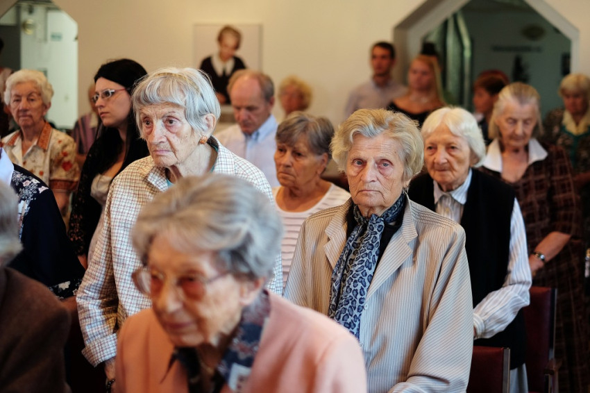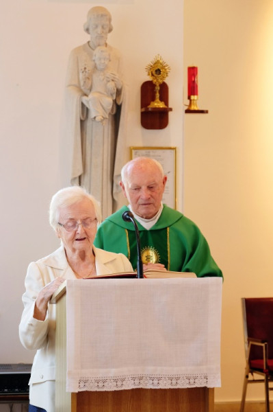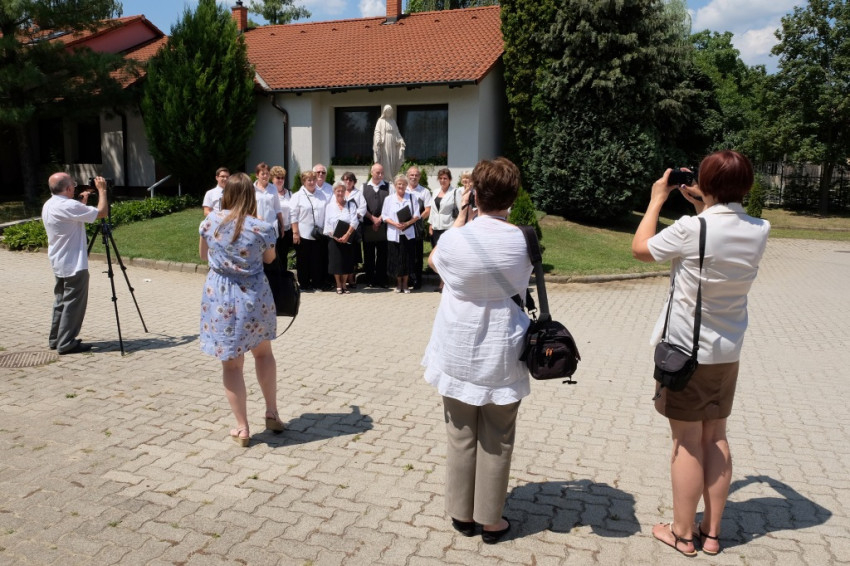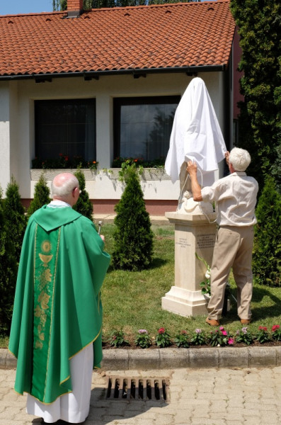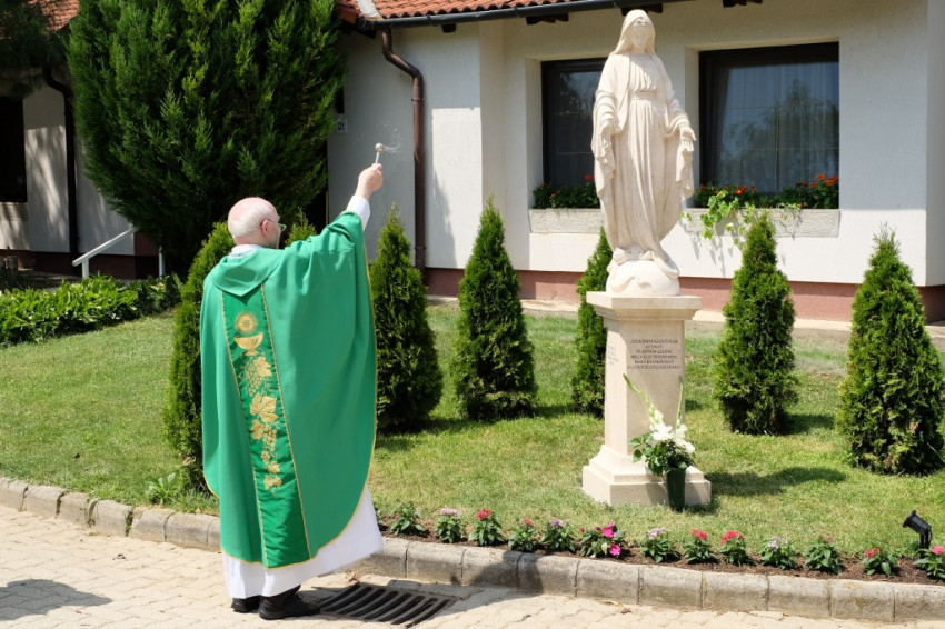 Mise után a kertbe megyünk, hogy a szobrot leleplezzék. Találjanak igazán egymásra az otthon lakói, és akik értük felelősek, imádkozza az atya, majd azért fohászkodik, hogy a Szűzanya példája mindig tudatosítsa számunkra: a cél az életünkben a másik ember; „csak” hozzá kell megérkeznünk ahhoz, hogy boldogok legyünk.