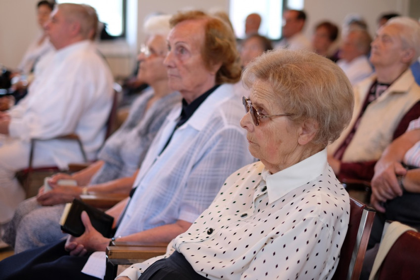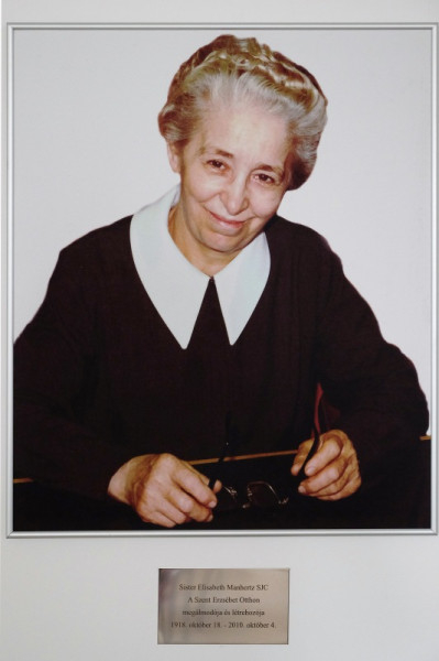 Az ünnepség után, az ebédlő felé tartva találkozunk Albel Gyulával, aki kedvesen az általa felügyelt emlékszobába invitál bennünket, amely az otthonalapító Jézus Szíve-nővér, a pilisvörösvári születésű, de az USA-ban szolgált Manhertz Erzsébet (1918–2010) életét és az idősgondozás, -ápolás általa kidolgozott Manhertz-elvét mutatja be.