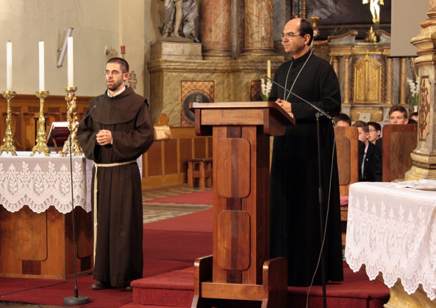 Előd atya (Jób atyának az édestestvére, akiről már írtak egyszer a megszentelt élet évével kapcsolatban) a Margit körúti ferences rendház főnöke, a ferences jelöltek magisztere és a Ferences Rendtartomány legfiatalabb definitora. A budai rendházba idén került át, aminek sokan nem örülünk, de akik ott vannak, biztos nagyon szeretik, úgy, mint mi itt, Esztergomban szerettük. Ugyanis mielőtt a Margit körútra került volna, az esztergomi Temesvári Pelbárt Ferences Gimnázium és Kollégium nevelője és igazgatóhelyettese volt.