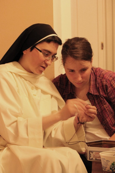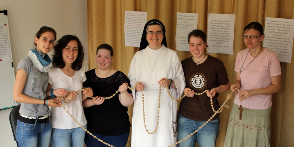 Anyaházukban a hivatásgondozás a feladata, ami igen fontos küldetés, s azt hiszem, ő ezt nagyon jól és csodás módon végzi, illetve sok-sok feladatból veszi ki részét. Néha el is csodálkozom, hogy bírja ezt. Nagyon jól tud fotózni, csodás képeket készít, emellett a rózsafüzér készítésének bajnoka. Mindig gondoskodik arról, hogy a rábízottak ne maradjanak egyedül magányosabb idejükben. Itt arra gondolok, hogy rózsafüzérrel ajándékozza meg őket, vagy olyan kis ajándék „szütyőt” készít, amely tele van lelki táplálékkal. Mindig buzdít az imádságra, arra, hogy Jézushoz forduljak minden helyzetben.
