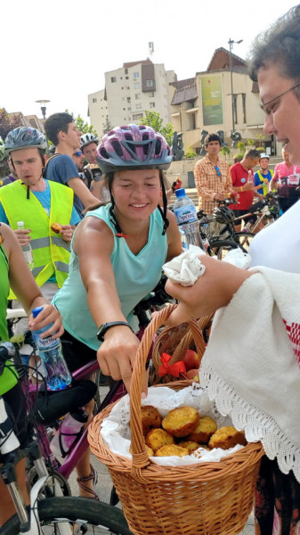 Öröm volt látni, ahogy az elgyötört kerékpárosok büszkén és boldogan tekertek Marosvásárhely főútjain. A fogadtatás, amelyben ezután a főtéren részük volt, hasonlóan magasztos és felemelő ünneppé vált. A felsorakozott kerékpárosokat Soós Zoltán, Marosvásárhely polgármestere, és Oláh Dénes főesperes fogadta elismerő szavakkal.