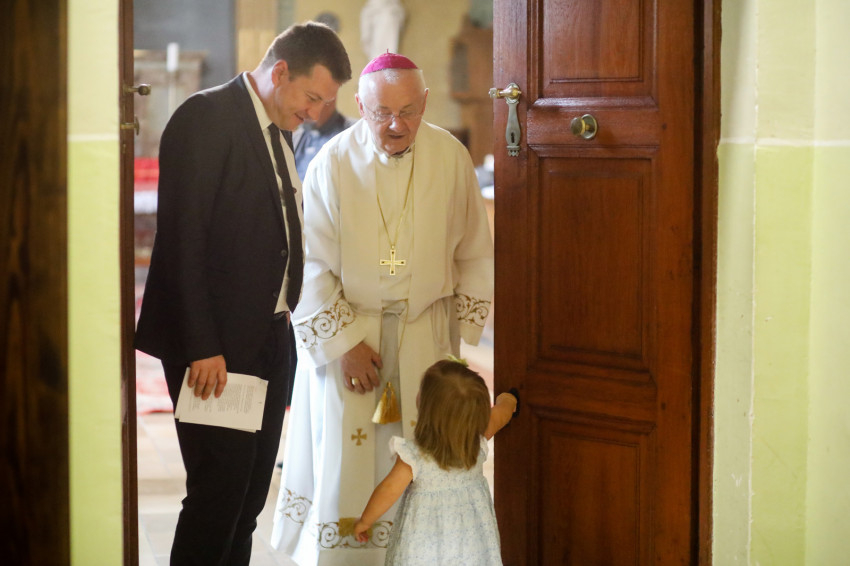 A szentmisét a Domus Universitatis és az Eszterházy Károly Katolikus Egyetem új névtáblájának megáldása követte. Szakadó esőben vonultak át az ünnepségen részt vevők a székesegyházból az Eszterházy téren át az egyetem épülete elé.