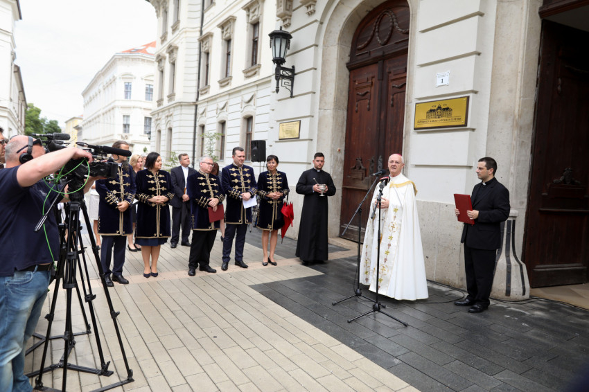 A megáldás szertartására kisütött a nap. „Szép eső volt délelőtt. Ez számunkra Isten áldásának jele és szimbóluma – mondta a főpásztor. – Ha így esne az eső, akkor a felhőket kellene megáldanom, és mint szenteltvíz hullana alá a Líceumra az eső. Kérjük, hogy legyen áldás a házon, a benne dolgozókon, tanulókon, mindenkin, akik magukénak érzik ezt az intézményt, valamint a városon. Hiszen a város és régió számára ez az egyetem emblematikus hely. Erre büszkének kell lennünk, és fel kell nőnünk ehhez az elváráshoz, amely az egész magyar társadalom elvárása felénk. Érezzük, hogy nagy kihívásnak kell megfelelnünk. Nem félünk, és nem vonakodunk a munkától. Isten legyen segítségünkre ebben!”