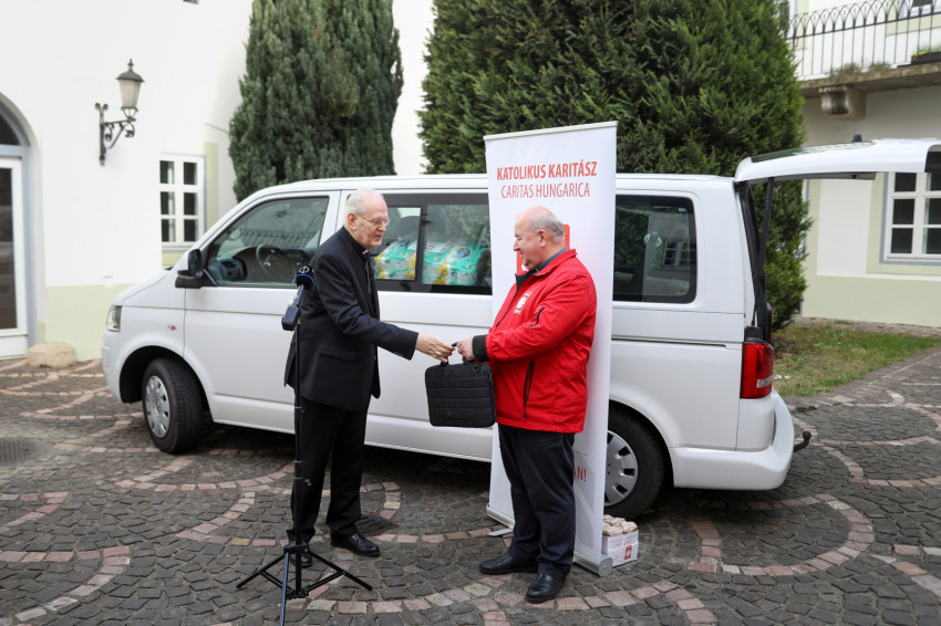 A budai várbeli prímási palota udvarán adta át Erdő Péter bíboros, prímás a Volkswagen mikrobusz kulcsait Écsy Gábornak, a Katolikus Karitász igazgatójának. Az élelmiszerrel teli jármű holnap indul Munkácsra, hogy az ott élők ellátását szolgálja.