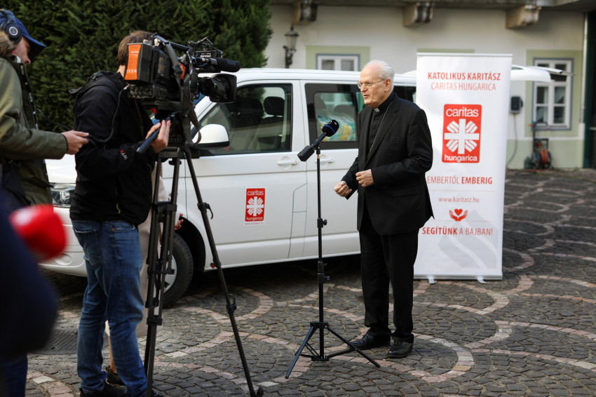 „Hosszú hetek óta minden magyarországi egyházmegye és a Katolikus Karitász egész szervezete azon dolgozik, hogy segítő szeretetünket kifejezzük az ukrajnai menekültek és a Kárpátalján élő nehéz sorsú magyarok és nem magyarok irányában. A helyzet egyre inkább megkívánja, hogy ne csak a határon segítsünk az érkezőkön, amit természetesen folytatunk, hanem a határon túl is. Együttműködést alakítottunk ki a munkácsi egyházmegyei karitásszal. Kárpátalján hatósági előírásra már minden település ötven menekült befogadására kötelezett. Ellátásuk biztosításához szeretnénk hozzájárulni” – mondta Erdő Péter bíboros az átadón.