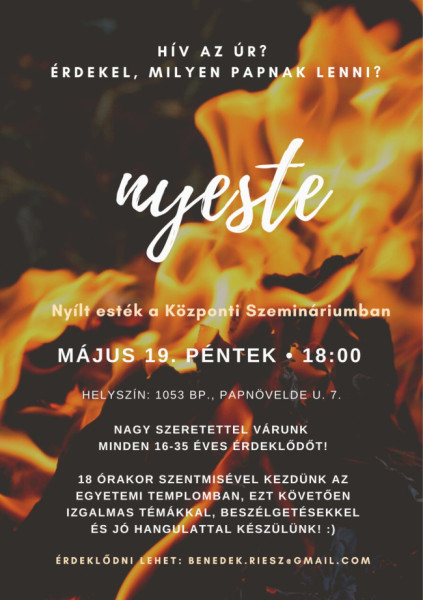 A Nyesté-re, azaz a Központi Szeminárium nyílt estjére is várják mindazokat, akiket érdekel, milyen papnak lenni. A Nyeste következő alkalmát május 19-én, csütörtökön 18 órától tartják.