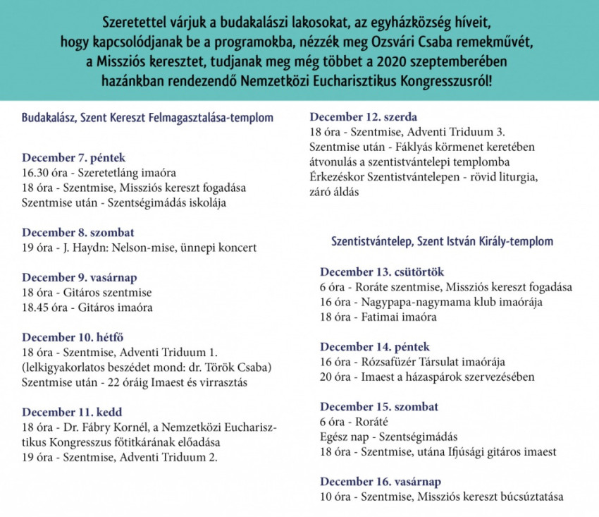 2018. december 7–12.: Budakalászi Szent Kereszt felmagasztalása templom