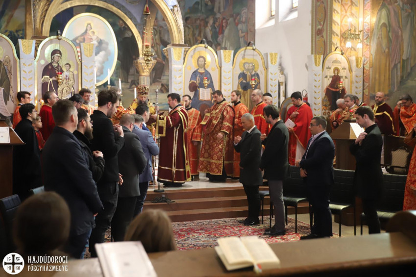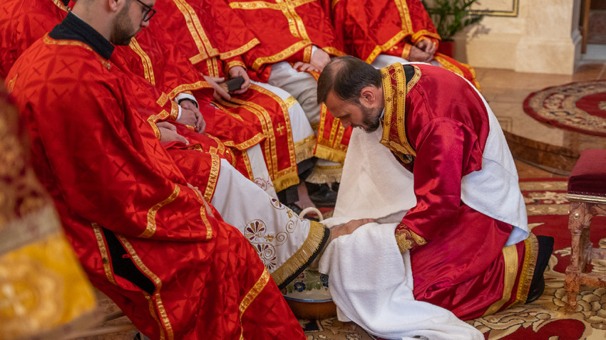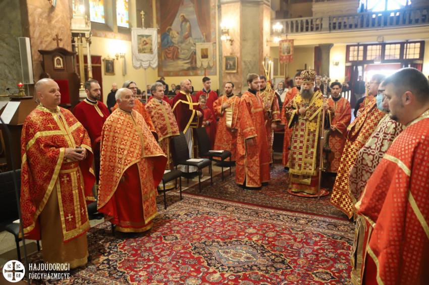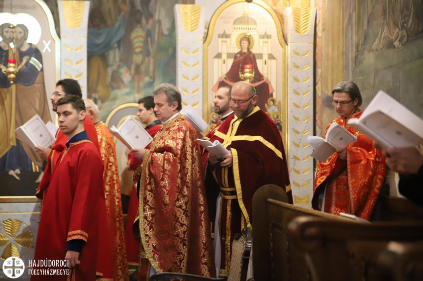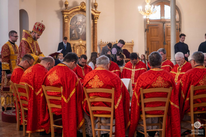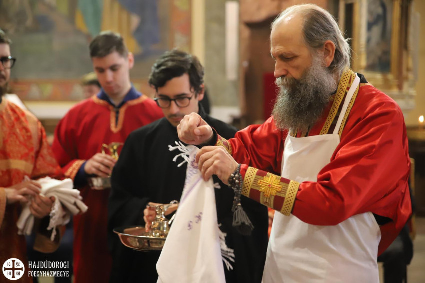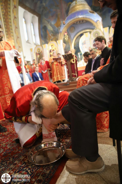 A szent vacsora titkának és az egyházi rend alapításának ünnepén Szocska Ábel nyíregyházi megyéspüspök végezte Nagy Szent Bazil Liturgiáját vecsernyével és lábmosással a Szent Miklós-székesegyházban. Az ambon előtti körszőnyeg körül április 14-én tizenkét paptestvér: esperesek, elöljárók, nyugalmazott és rangidős áldozópapok, helynökök, valamint egy ötödéves papnövendék foglalt helyet.