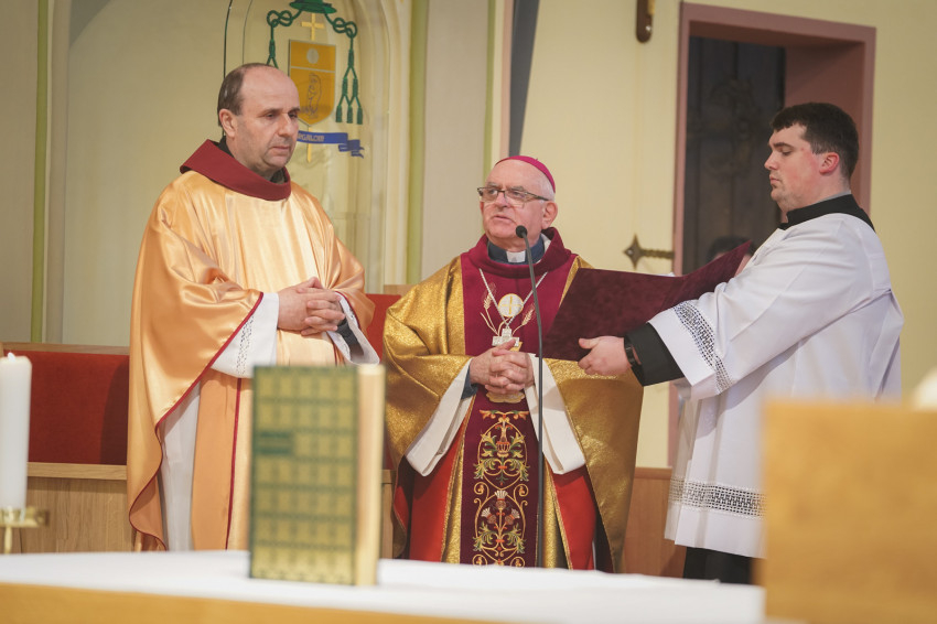 Palánki Ferenc debrecen-nyíregyházi megyéspüspök a Szent Anna-székesegyházban mutatta be nagycsütörtökön a szentmisét, amelyen jelen volt Krakomperger Zoltán általános helynök, plébános és Tóth László diakónus, püspöki titkár is.