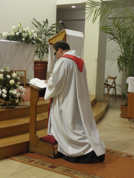 Dolhai Lajos katekézisében az Eucharisztia áldozati jellegéről beszélt, hangsúlyozva, hogy minden szentmisében jelenvalóvá válik számunkra Krisztus megváltó áldozata. Minden liturgiában hálát kell adnunk azért, hogy a Megváltó Jézus a kenyér és a bor színében jelen van közöttünk és belőle szent kegyelmet és egészséges lelki erőt meríthetünk a Krisztust követő keresztény élethez. Valamint ahhoz, hogy életünk áldozatait, keresztjeit, a testi lelki szenvedéseinket, Krisztushoz méltóan tudjuk hordozni. A katekézist végül Dolhai Lajos két újonnan megjelent könyvének a bemutatásával zárta.