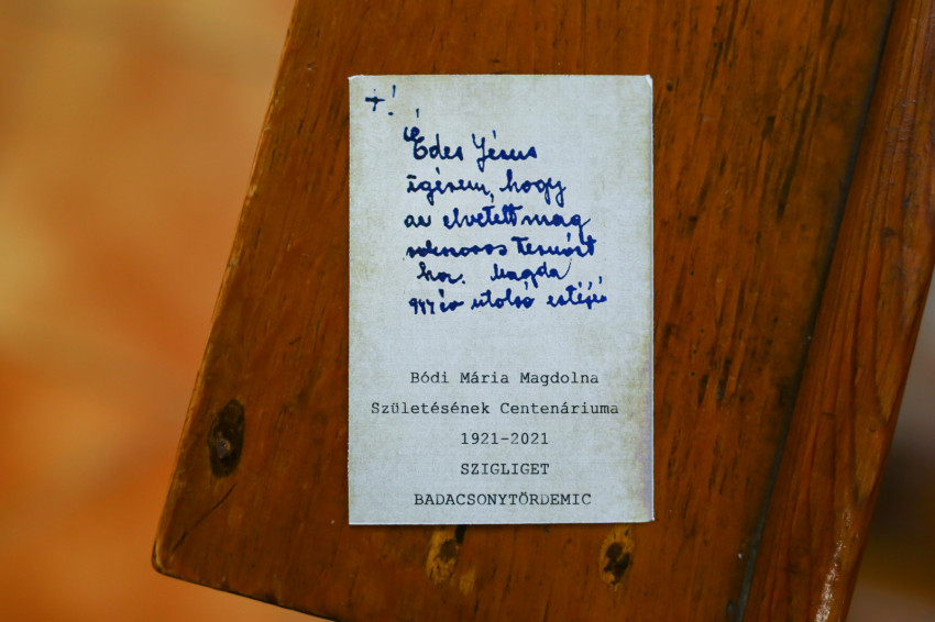 A főpásztor kiemelte: bátorító ebben a törekvésünkben Bódi Mária Magdolna, akinek élete középpontjában az Eucharisztia állt. Áldozatokat hozott azért, hogy mindennap magához vegye az Eucharisztiát. Ha az egyik településen egy nap nem volt mise, átment a másikra, mert akart találkozni Krisztussal, akarta az örök életet. Dolgozott, mégis, naponta táplálkozott az Eucharisztiával, azért, hogy ereje legyen és bátorsága, hogy szolgálni tudjon. Ez volt az ő erőforrása ahhoz, és így