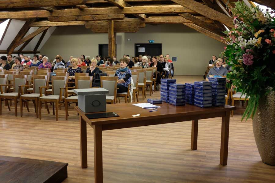 A továbbképzés alkalmával kiosztották az Udvardy György püspök által a hitoktatóknak ajándékozott Eucharistia társasjátékokat és a NEK-re való felkészülés idei ötletfüzeteit.
