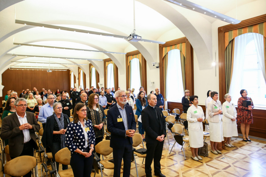 Kató Csaba diakónus a köszöntő után felvázolta a háromnapos konferencia ívét, melynek középpontjában az eucharisztikus életbe való bevezetés áll. Ismertette, hogy az első nap az Országos Katekumenátus Konferenciák húsz évéért való hálaadás jegyében telik egészen az esti fogadásig, majd bemutatta a szervező munkatársakat.