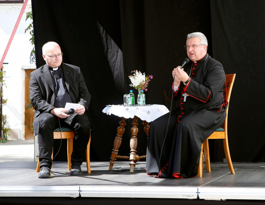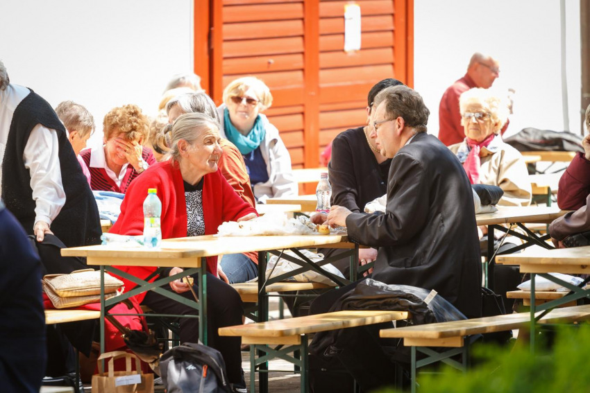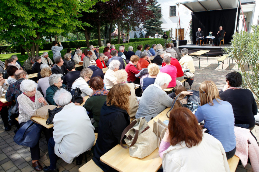 A szentmise után a szervezők a Püspökvár kertjébe várták a családokat, ahol a Hangraforgó együttes hívta zenei kalandozásra az érdeklődőket. A zenészektől Veres András megyéspüspök és Reisner Ferenc, a Brenner János Hittudományi Főiskola és Papnevelő Intézet rektora vette át a pódiumszínpadot. Beszélgetésük alapját azok a kérdések adták, amelyeket a hívek előzetesen küldtek el erre az alkalomra. A kérdezők a délután folyamán választ kaphattak a főpásztori szolgálat mai kihívásaira, a fiatalok megszólításának lehetőségeire, illetve az Egyház és az egyházmegye jövőjét érintő kérdésekre.