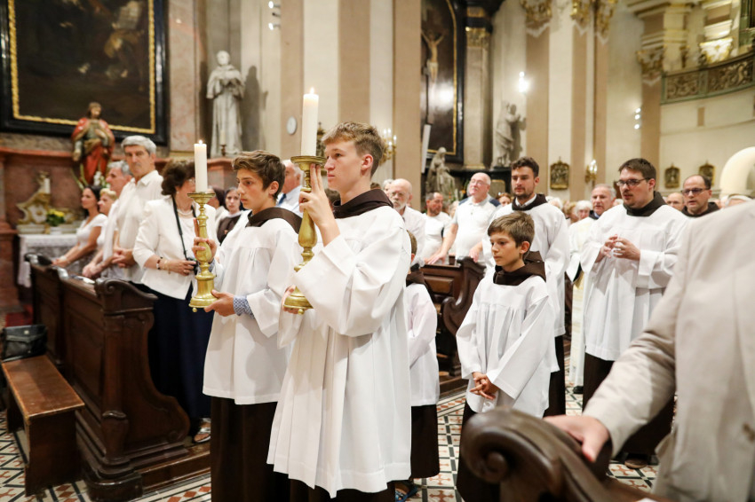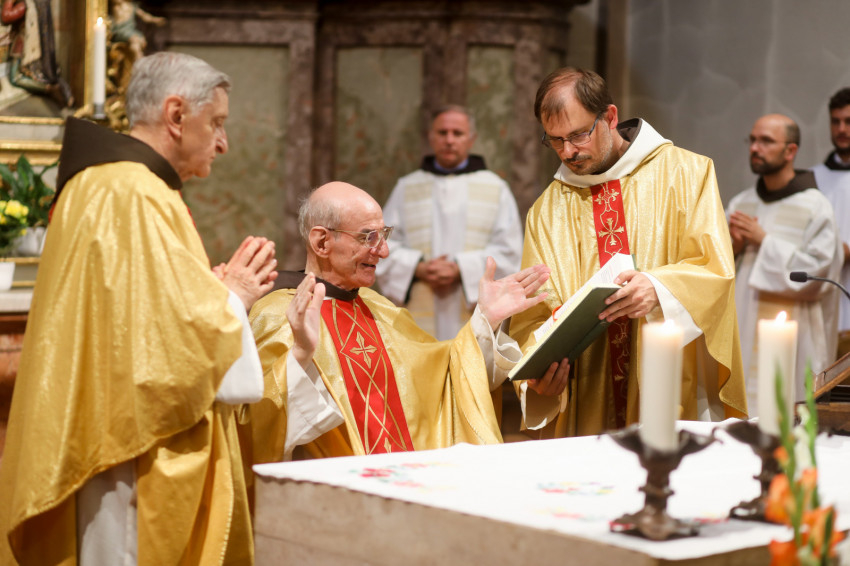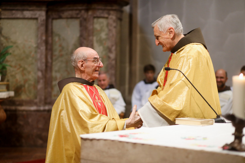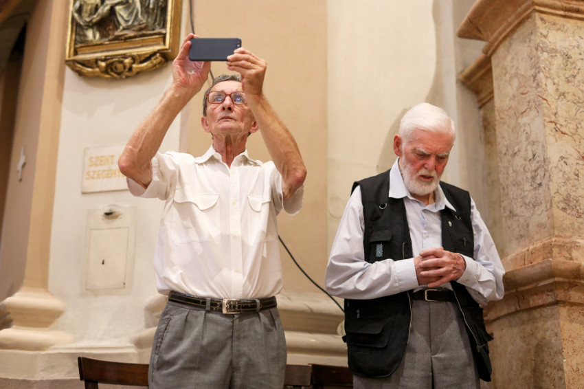 A szentmisén köszöntötték az ugyancsak ötven éve pappá szentelt Barsi Balázs ferences szerzetest is. Kolos atya végül aranymisés áldásban részesítette a megjelenteket.