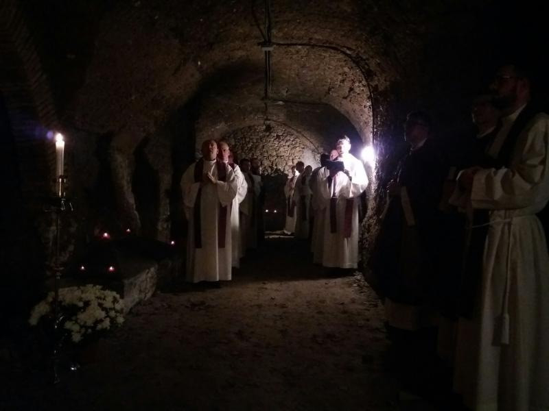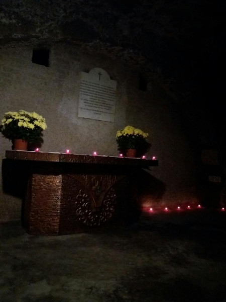 A jelenlévők a szentmise végén lementek az altemplomba, és az emlékkápolna alatt lévő sír előtt – amelyet egy oltár és egy latin nyelvű emléktábla jelöl – magyarul is imádkoztak az elhunyt hősök lelki üdvéért, valamint a békéért.
