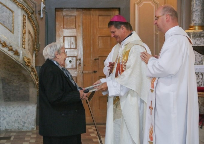 A bevonulást követően mondott üdvözletében Schönberger Jenő püspök megköszönte azt a kegyelmet, amit Isten az időseknek egy életen keresztül adott, illetve azt a kegyelmet, hogy megélhették a szép kort. Hozzátette: „Természetesen az időskor nemcsak a bölcsességet, a szép életkort jelenti, hanem megvan a maga keresztje is, de Isten jobban tudja, mi az, ami lelkünk javára válik. El kell fogadni Istentől nemcsak a szépet, hanem a kevésbé szépet is, nemcsak az örömet, hanem a keresztet is. Nagyon helyénvaló, ha nemcsak az Egyház, de a társadalom is megbecsüli azokat, akik egy életen keresztül dolgoztak azért, hogy a következő nemzedék boldogabban élhessen.”
