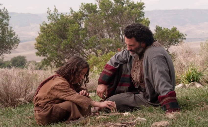 A filmben többször keresztezi egymást a Szent Család és Severus útja. Rögtön az út elején zelóták támadnak a római századosra és embereire. A szülei engedélyével előrefutó Jézus szemtanúja lesz az öldöklésnek. Az egyik haldokló lázadó a kezét nyújtja felé, mintha élete utolsó pillanataiban lelki vigaszt remélne a gyermektől. Az egyik római katona lesújtani készül Jézusra, de az éppen ekkor érkező Severus ellöki őt. A betlehemi gyermekek lemészárlását nem lehet jóvátenni, de a százados ezzel egy lépéssel közelebb kerül a lelki megtisztuláshoz. A film egyik csúcsjelenete, amikor a jeruzsálemi templom előtt Jézus isteni erejével visszaadja az egész életében vak rabbi látását. Severus ekkor már tudja, kicsoda Jézus. A tömeg hatalmas, mindenki örvendezik a rabbi gyógyulásán. Középen azonban szabad a tér, Mária és József, valamint a kivont karddal álló Severus és néhány katonája néznek szembe egymással. A gyermek ott áll a szülei előtt, védtelenül, kiszolgáltatva a nyers erőnek, ám tekintetéből ennek ellenére szeretet és bizalom árad potenciális gyilkosa felé is. Emlékezteti a római századost: „Egyszer már megmentettél… Te ott voltál Betlehemben.” Severus hosszasan gyötrődik, mélyen a gyermek szemébe néz, majd a szülőkre, a katonáira. Közben felidéződnek a betlehemi gyermekgyilkosság szörnyűséges pillanatai, látjuk a zokogó, jajgató anyákat, a védtelen kisdedeket gyilkoló katonákat, köztük Severust. Most azonban itt, a jeruzsálemi templom előtt a római százados kezéből kihull a kard, gyermeket nem öl még egyszer.