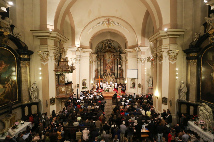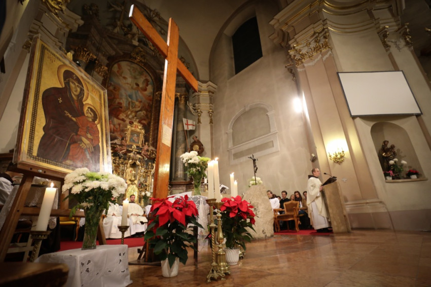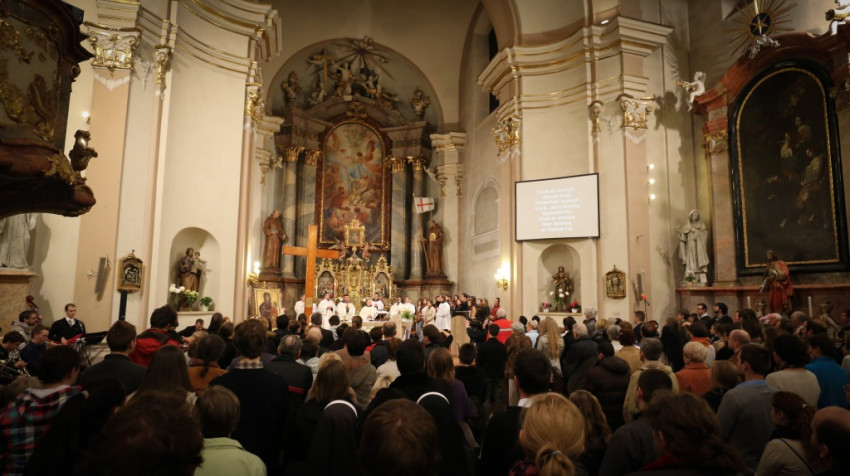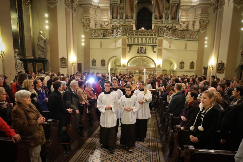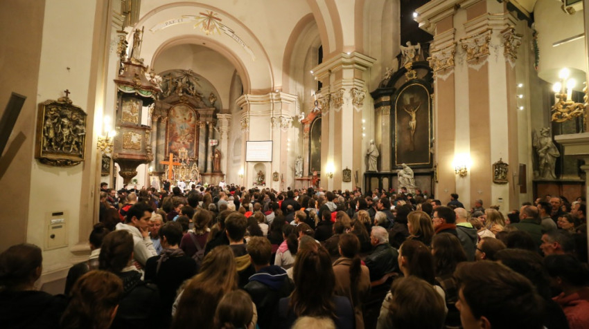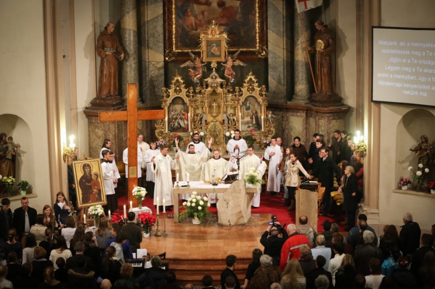 A budai ferences templom és kolostor, mely a Margit körút elődjéről, a Budáról Bécsbe vivő országútról kapta a nevét, már jóval a liturgia kezdete előtt megtelt a kereszt és az ikon fogadására összegyűlt fiatalokkal.