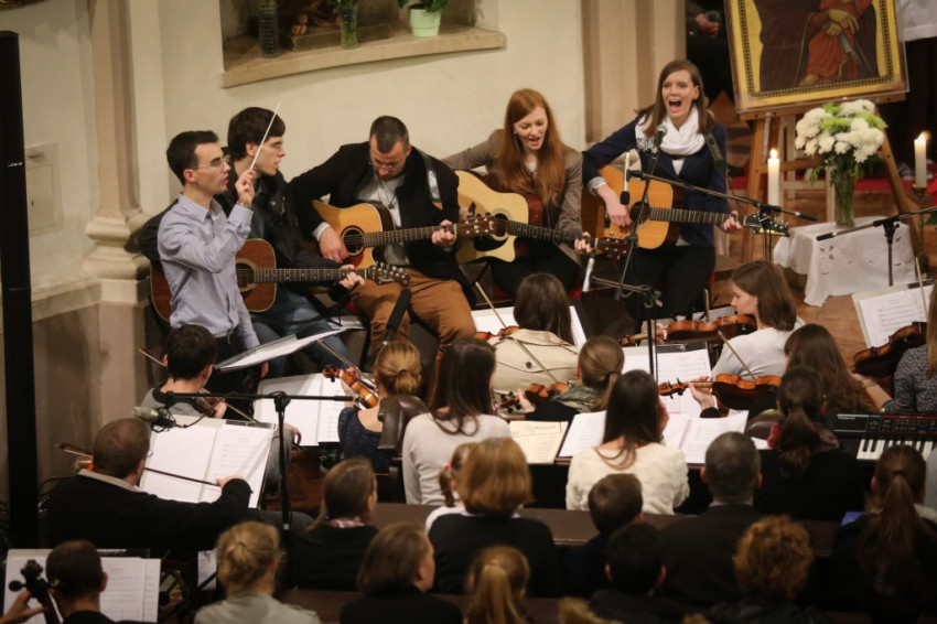 A szentmisét követő közös dicsőítés elején Dobszay Benedek katekézist tartott, melyben Ferenc pápa februári üzenetéről elmélkedett, a nyolc boldogság témájáról. Számos okot látunk rá, hogy ne legyünk boldogok – de a boldogság valójában belső hozzáállás kérdése. A világ arra csábít – tanítja a Szentatya –, hogy „elég az életet kicsiben játszani”, de mi nem elégedhetünk meg ennyivel.