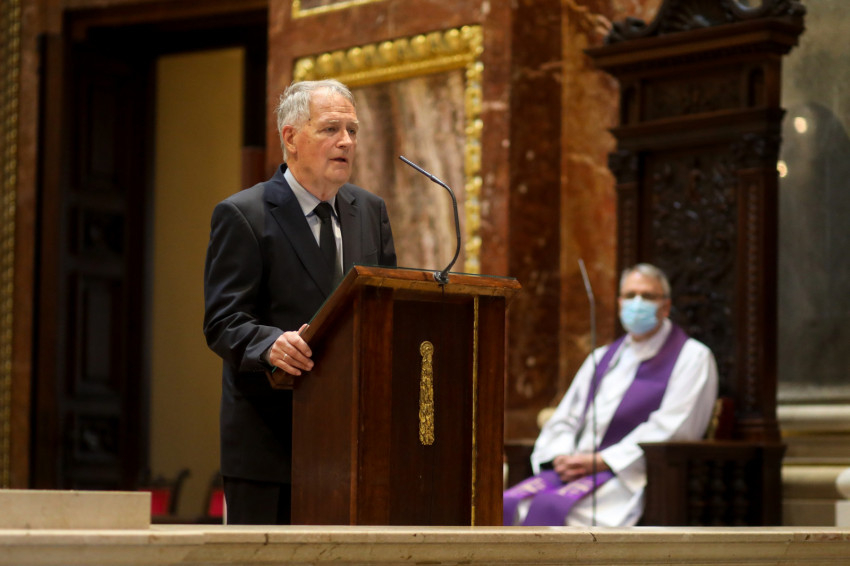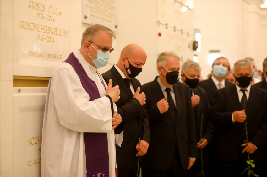 Horváth Zoltán imádkozott az elhunyt lelki üdvéért: „Ha már nem lehet itt köztünk a földön, legyen boldog a mennyben. Kérjük Istent, készítsen lakhelyet számára, halhatatlan lelkét vegye fel a mennybe. Tartsunk rövid csendet, idézzük fel emlékeinket, adjunk hálát mindazért a jóért, amit Sándortól kaphattunk, és kérjük számára az üdvösséget.”