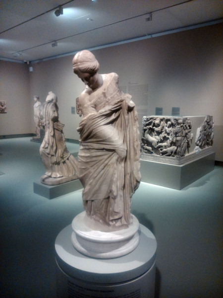 Az antik hagyományt bemutató kiállítás középpontjában a görög, az etruszk és a római kultúra áll, tágabban pedig a Földközi-tenger medencéje, amelynek ókori világát három különböző szempontból közelíti meg a tárlat: Hellasz – Itália – Róma, az európai művészet három ókori útja; Kultúrák uniója – az ókori Mediterráneum; „Lépjetek be, itt is istenek vannak!”, Erósz – Dionüszosz – Thanatosz. A rendkívüli gondossággal megtervezett tágas kiállítóterekben központi helyet kapott a Budapesti táncosnő, vagy más néven a Kislány szobra, a múzeum egyik leghíresebb, sokat reprodukált hellenisztikus kori műve. A márványból, dús ruharedőkkel kifaragott kecses mozdulatú leányalak nem biztos, hogy táncol, lehet, hogy csak az új ruháját nézegeti, vagy egy felnőtt nő köpenyét próbálja fel. Rengeteg, márványból faragott antik portré, dombormű és korabeli amfora látható még a termekben, persze a teljesség igénye nélkül.