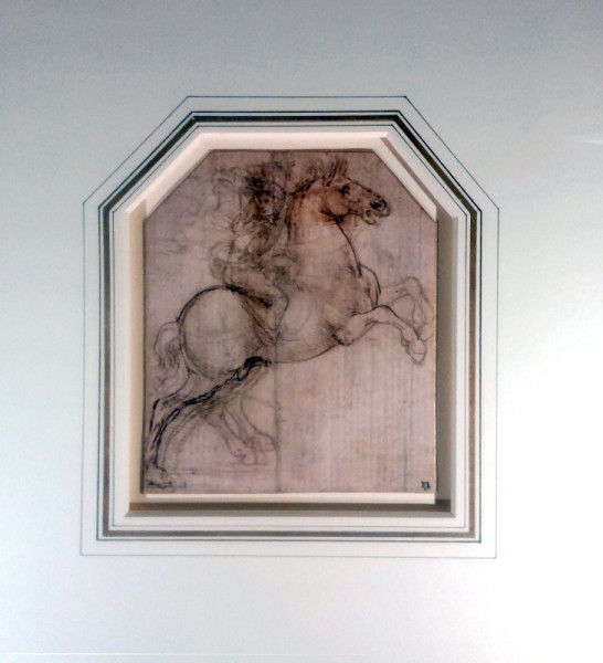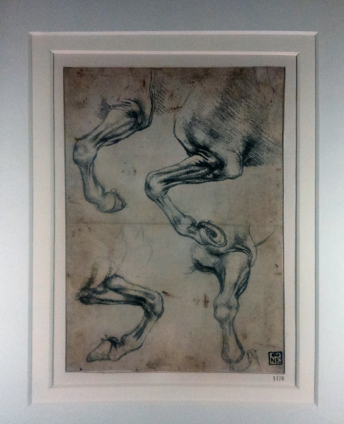 A kamarakiállításon az egyik legszebb rajz a Lólábtanulmányok című, amely 1490–1493 körül készült. Leonardo műhelyében előszeretettel használtak kisméretű viasz- vagy agyagmodelleket az összetett, sokszereplős jelenetek megkomponálásához. Így a most kiállított rajz sem közvetlenül egy élő ló, hanem a mester korábbi tanulmányait összegző, háromdimenziós modell után készülhetett, a Sforza-emlékmű mintázását megelőzően. Szintén igazi remekmű Leonardo Ágaskodó ló című vöröskrétarajza. 1503-ban a mestert megbízták, hogy a firenzei városháza nagytermét az anghiari csatát ábrázoló falképekkel díszítse. Ez lehetőséget kínált számára ahhoz, hogy újrafogalmazza egy korábbi falképének hátterében két évtizeddel korábban felvázolt lovas ütközet kompozícióját. Az Ágaskodó ló, ez a lendületes vöröskrétarajz az egyik legmegkapóbb a freskóhoz szánt lótanulmányai közül.