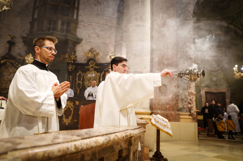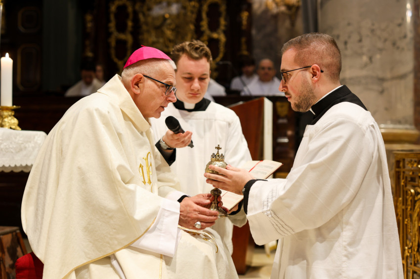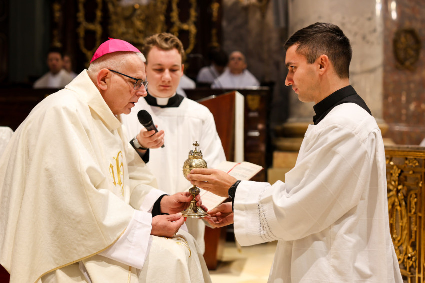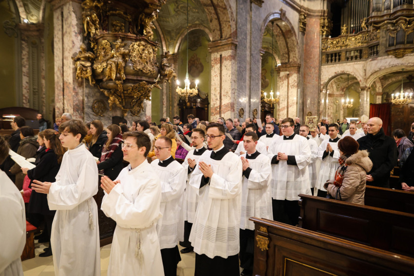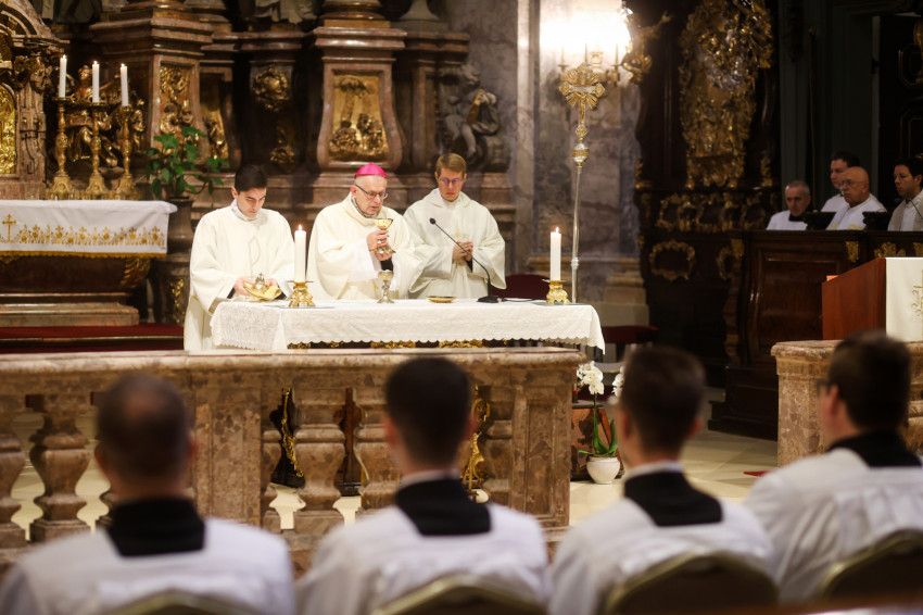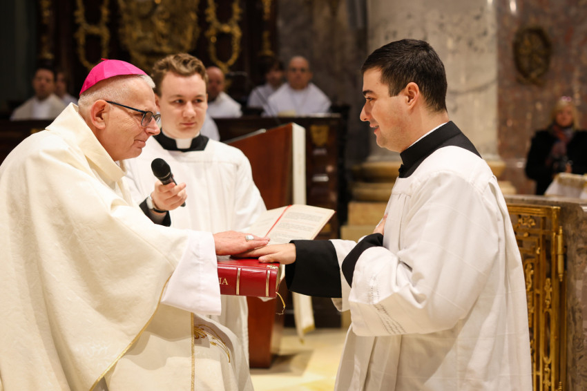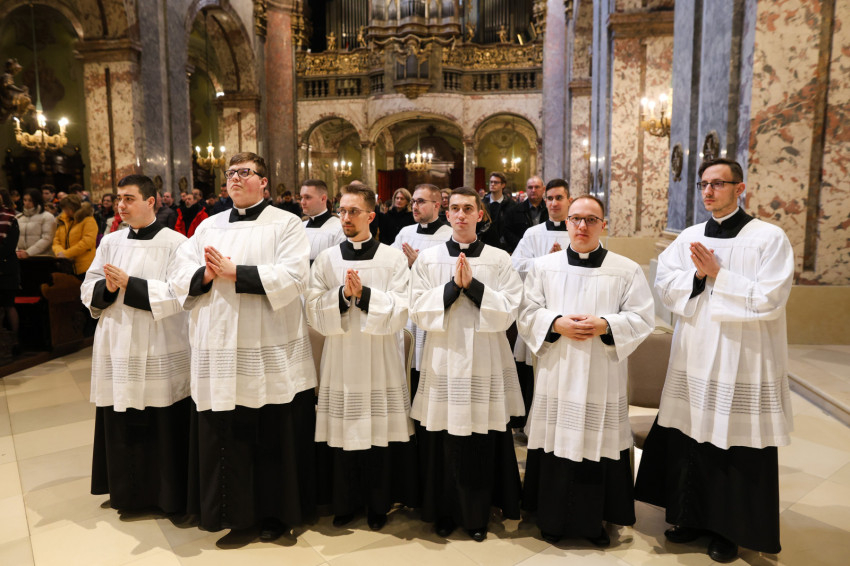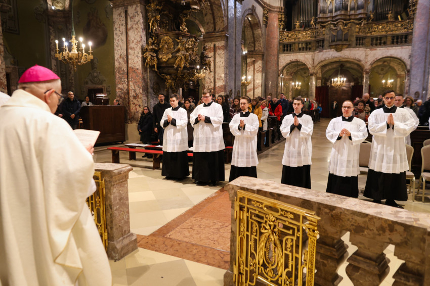 „Azzal bíz meg benneteket a lektor- és akolitusavatásban, hogy átkovászoljátok a világot. Nem az egész világot, hiszen az képtelenség, és nem is azt a világot, amelyik akárcsak pár száz méterre vagy több ezer kilométerre van tőletek, hanem azt a világot, ahol vagytok, a ti világotokat, itt a Központi Papnevelő Intézetben és elsősorban saját egyéni személyiségetek világát. A tanulmányaitokban való előrehaladásban, a lelki életben való gyarapodásban, a spirituális fejlődésben, egyre jobban és egyre erőteljesebben törekedve elérni a szív tisztaságának boldogságát. Ez egy nagyszerű küzdelem, amelyben napról napra szembesülni lehet a gyengeségekkel, hibákkal, bűnökkel, de mindezek arra tudnak figyelmeztetni, hogy az Istennek való elkötelezettség zarándokútján mennyi tennivaló van, hogy a harcos küszködés nem adható föl egy pillanatra sem” – fogalmazott a püspök.