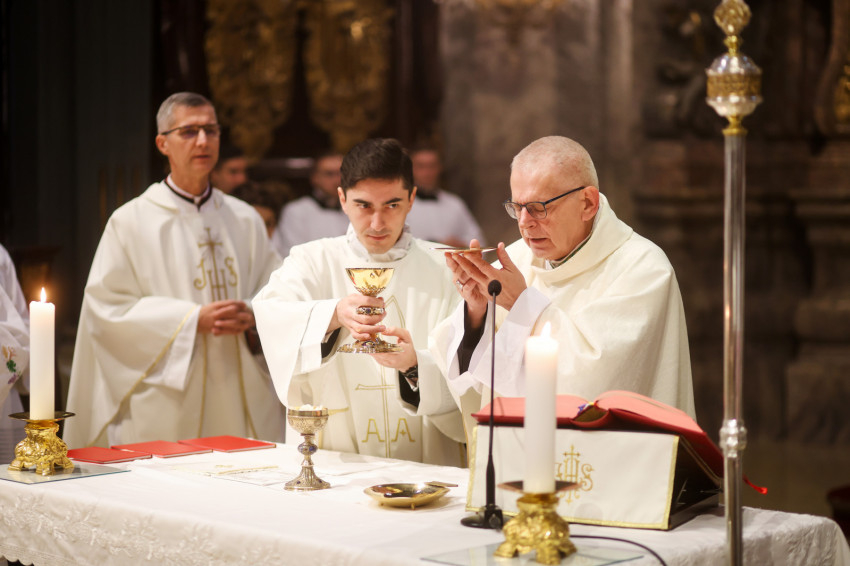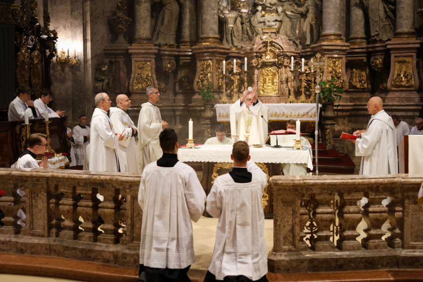 Berta Tiborral koncelebrált Martos Levente Balázs esztergom-budapesti segédpüspök, a Központi Papnevelő Intézet (KPI) rektora, Puskás Attila, a Pázmány Péter Katolikus Egyetem Hittudományi Karának dékánja, Száraz László, a KPI spirituálisa, Lovassy Attila, a KPI prefektusa.