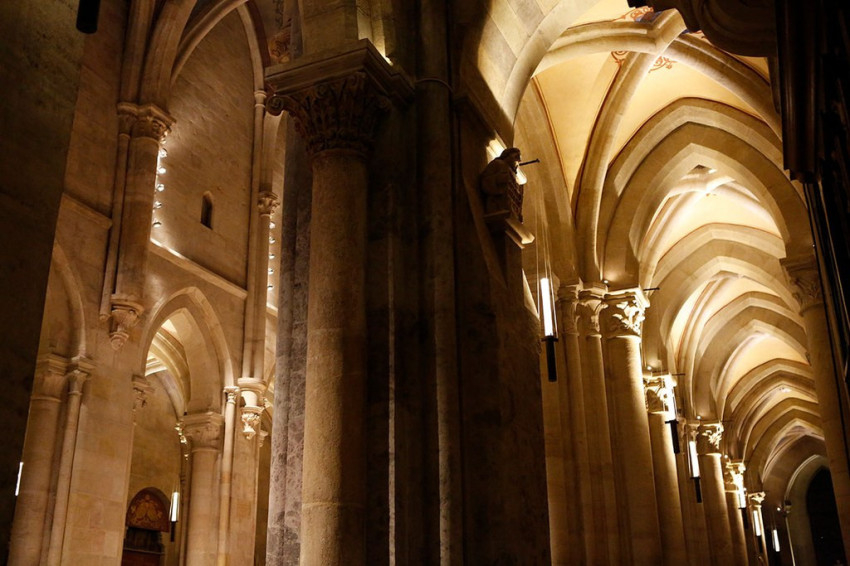 ez a csodálatos, 800 éves templomtér szervesen magába foglalja az alapítás óta itt emelt valamennyi korábbi szentély, templom részleteit, alapjait.