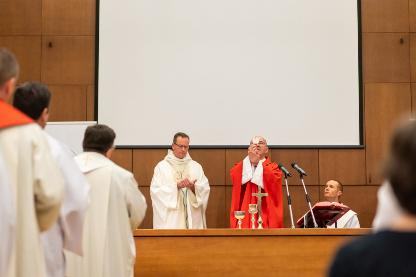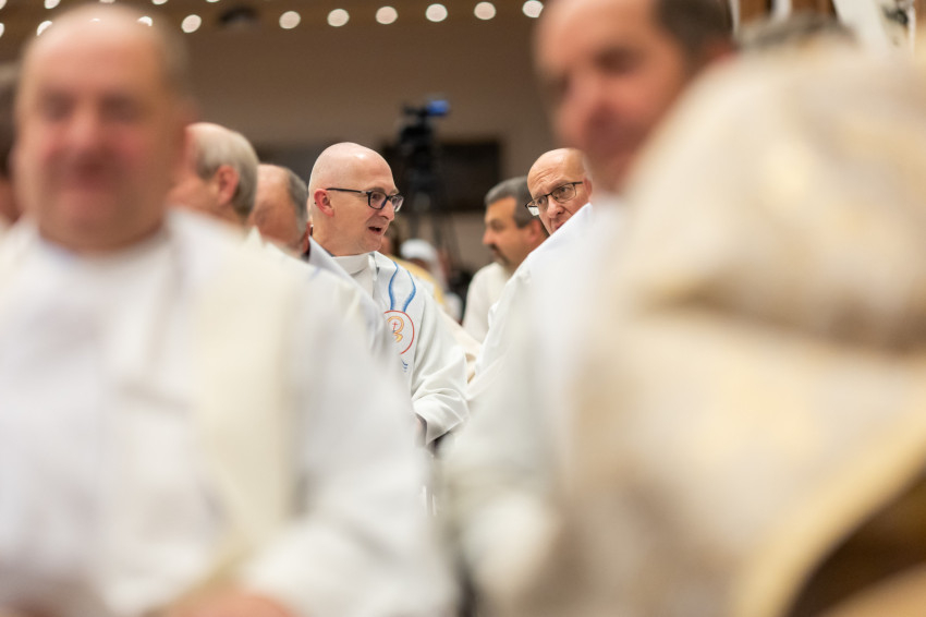 A hétfői szentmise főcelebránsa és szónoka Marton Zsolt váci megyéspüspök volt. A liturgia elején kifejezte annak fontosságát, hogy a forráshoz mindig visszatérve éljünk és ünnepeljünk.
