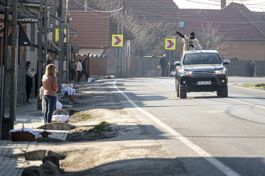 Székelyföldi katolikus falvakban azonban a kapukban várták a családok az előkészített, megszentelendő étellel a plébánost, aki szekéren járta végig az utcákat áldást osztogatva. László Rezső, a csíkcsicsói Szent Antal plébánia plébánosa egy terepjáró autó platóján állva szenteli meg a hívek étellel teli kosarait .A két református egyházkerület püspökei arra kérték híveiket, hogy a Duna Televízióban kövessék Bogárdi Szabó István püspök családja körében tartott istentiszteletét, és mindenütt a családfő szolgáltassa ki a családtagoknak az úrvacsorát.