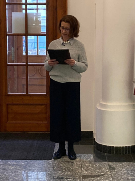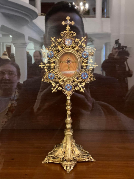 Végül Kovács Péter egy csontereklyét adott hozzá a tárlat anyagához a Nádi Boldogasszony Plébániából, majd felolvasták Csáky Ilona grófnő és Wenckheim László gróf levelét, amit Tóthné Gyevnár Erikának címeztek a kiállítással kapcsolatban.