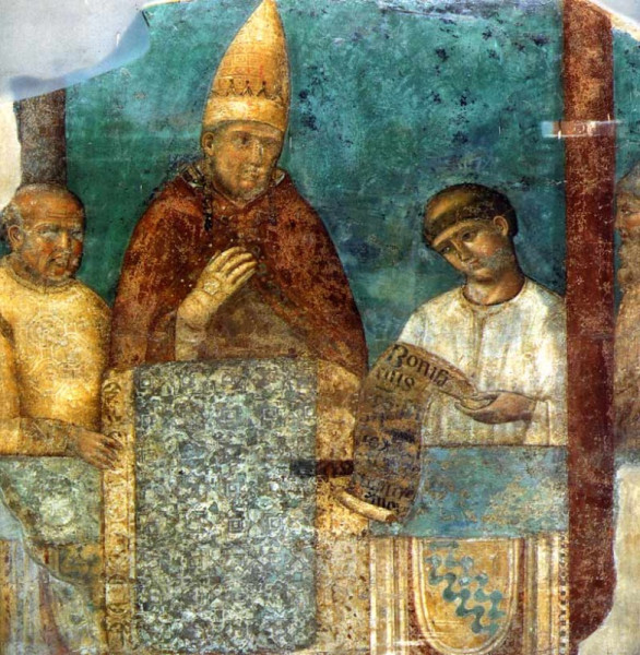 Giotto: VIII. Bonifác pápa (freskó, 1300 körül, lateráni Szt. János-bazilika, Róma)