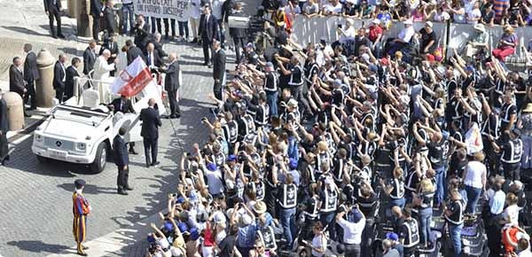 A motorosok június 22-én a Szent Péter téren találkoztak Ferenc pápával, aki megáldotta a zarándokokat. Ajándékokat is vittek neki: bukósisakot, egy különlegesen míves munkával elkészített fehér motorosdzsekit, hátán az IVT logójával, és egy keresztet, amit egy motorkerékpár alkatrészeiből állítottak össze. A sisakot Marek Jusięga, az airbrush-festés lengyel mestere díszítette. A művészt Adolf Hyla Irgalmas Jézust ábrázoló ismert festménye ihlette.
