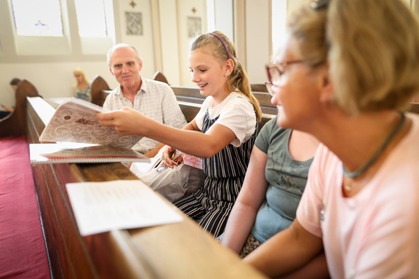 A plébános megáldotta a táskákat és tanszereket, majd a Miatyánk elimádkozása után a gyerekeket is.
