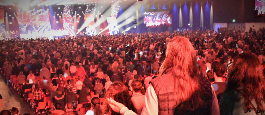 A Gebetshaus Augsburg [Augsburgi Imádság Háza] által kezdeményezett imakonferencia idei jelmondata, God Is Here [Isten itt van], a részt vevő tizenegyezer ember tapasztalatát is kifejezte. Ezt az imafesztivált korábban évente megrendezték az augsburgi Messe Zentrumban, egyre nagyobb termekben, míg elérte a tízezres létszámot. A 2020 óta – a pandémia miatt felfüggesztették a rendezvényt, majd pedig csak kisebb létszámú, úgynevezett Weniger konferenciákat tartottak – először megtartott nagyrendezvény gerincét az előadások és a zenés imádság jelentette. Több csoportban magyarok is jelen voltunk: a Nyolc Boldogság Közösség és az Imádság Háza sülysápi és soproni csoportjai mellett magánkezdeményezésre is érkeztünk magyarok. Én Fábry Kornél püspök autójában kaptam helyet.