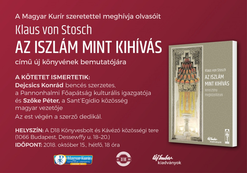 A könyvet Dejcsics Konrád bencés szerzetes, a Pannonhalmi Főapátság kulturális igazgatója és Szőke Péter, a Sant’Egidio közösség magyar vezetője mutatja be a D18 Könyvesbolt és Kávézó közösségi terében (1066 Budapest, Dessewffy utca 18–20.) október 15-én, hétfőn 18 órakor. Az est végén a szerző dedikál. Mindenkit szeretettel várunk!